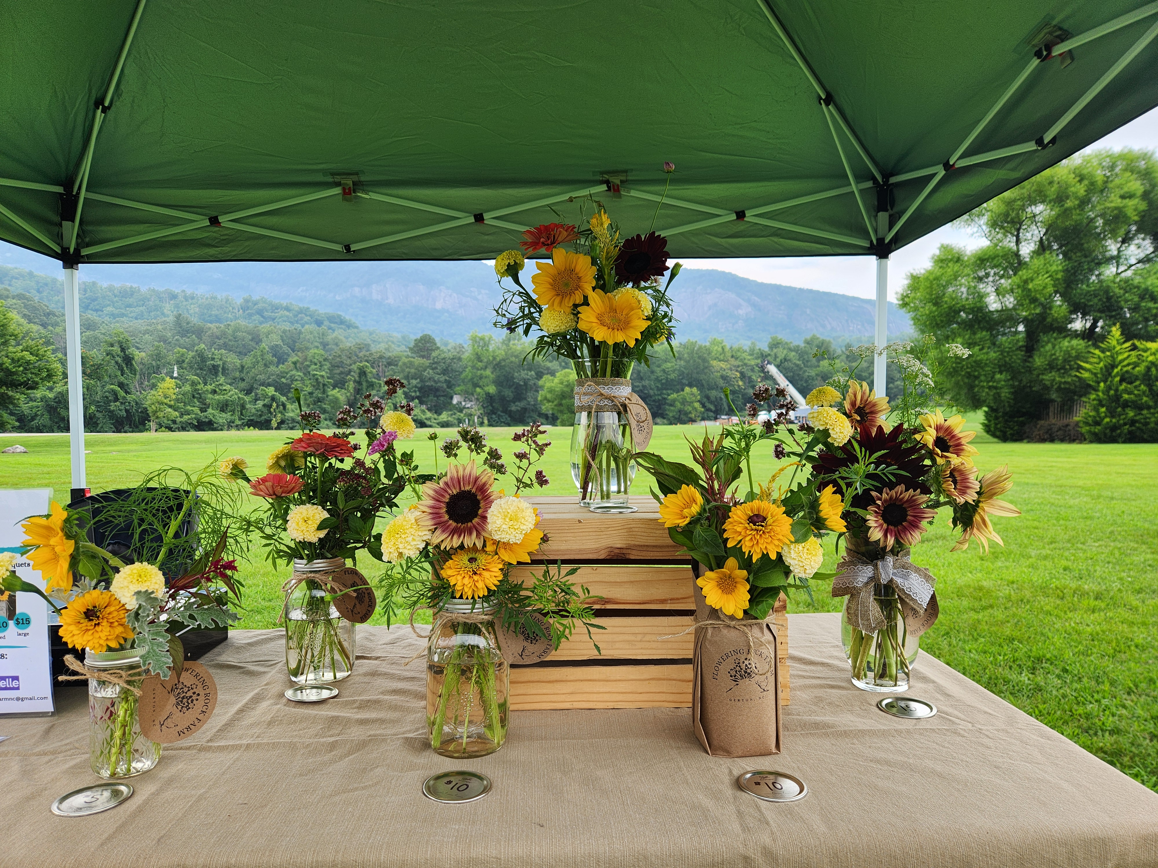 Fresh Bouquets: Our beautiful flower bouquets sold out 2 weeks in a row at the Lake Lure Farmer’s market! Flowers are continuing to bloom, and we are excited to add zinnias to the mix. Our mixed bouquet jars can be purchased at our Farm Stand between 10AM-7PM (first come, first serve), Bearwallow Provision Company, the Lake Lure Farmer’s Market, or email floweringrockfarmnc@gmail.com for a local delivery.