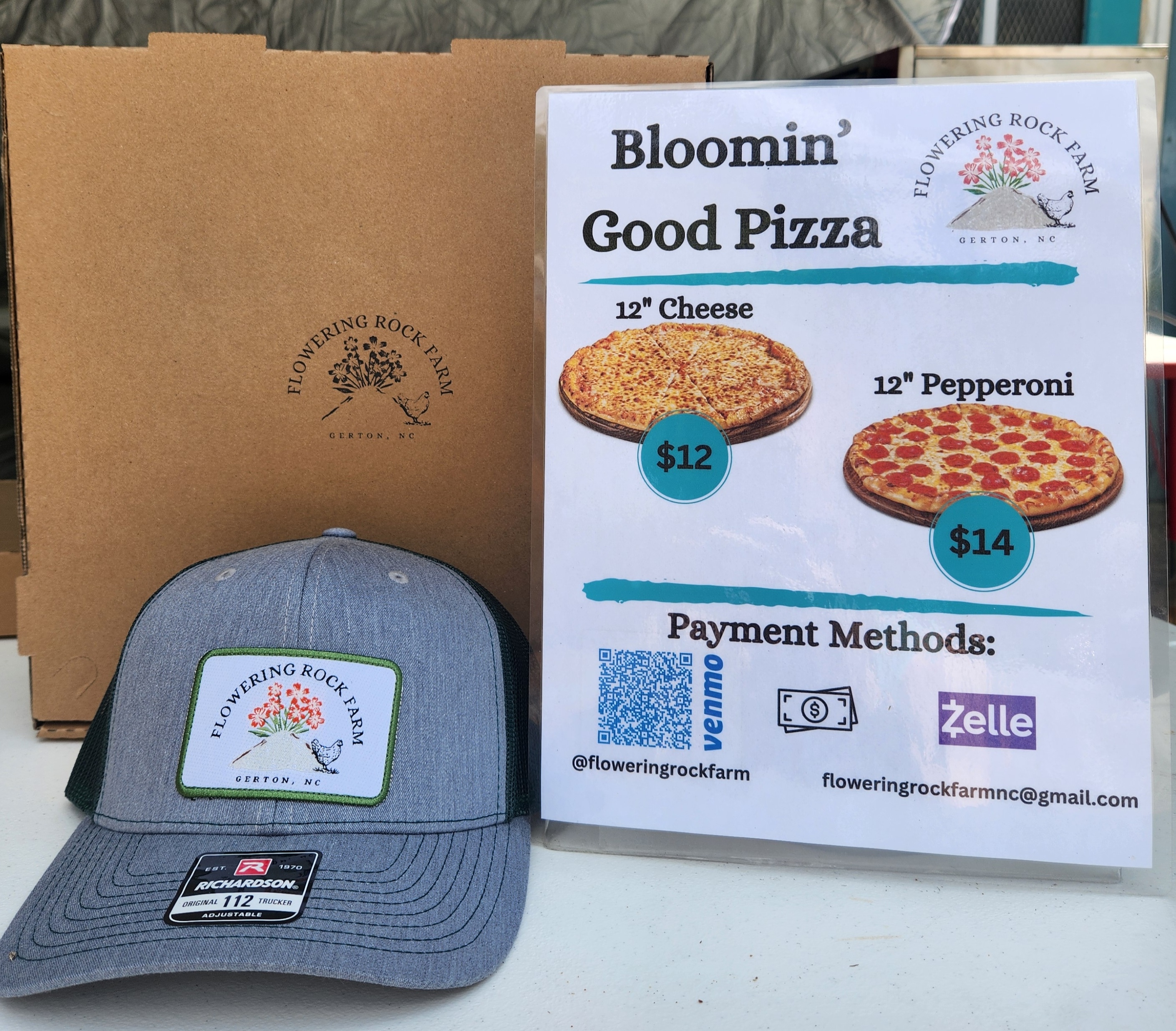Pizza Shirts: In addition to our farm hats, we have ordered new Flowering Rock Farm pizza shirts. You will be able to purchase them at pizza nights soon!