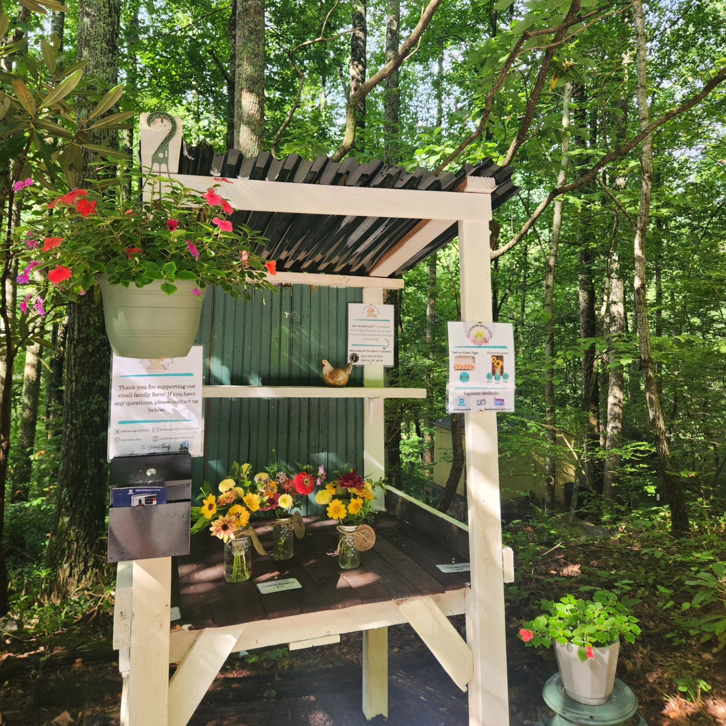 Farm Stand Reminders: Located at 3761 Gerton Hwy, our stand features fresh, sustainably grown flower bouquets and pasture-raised eggs (when available). Payment can be made on the honor system with cash, Venmo (@floweringrockfarm), and Zelle (floweringrockfarmnc@gmail.com). Please respect our farm stand and the flowers available.